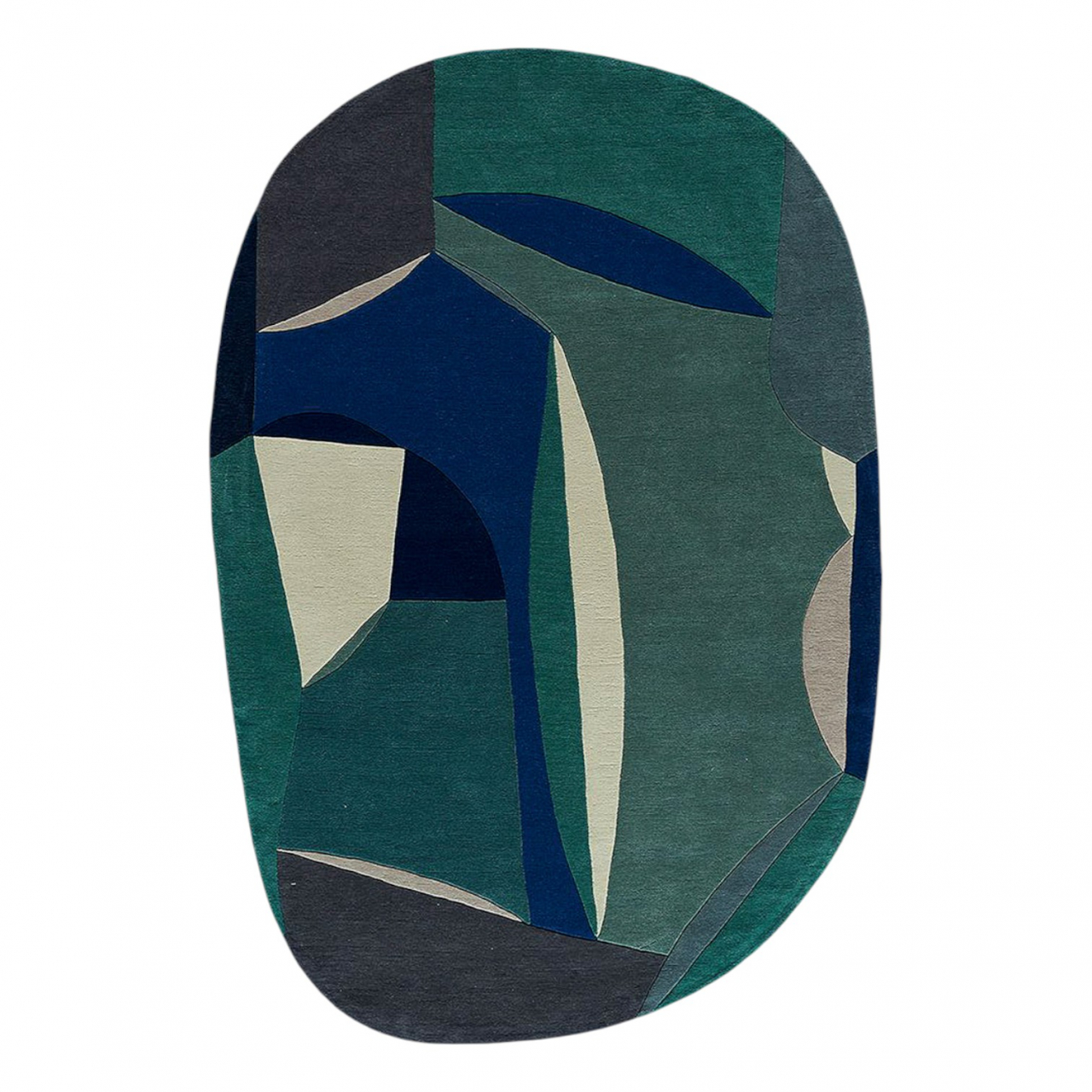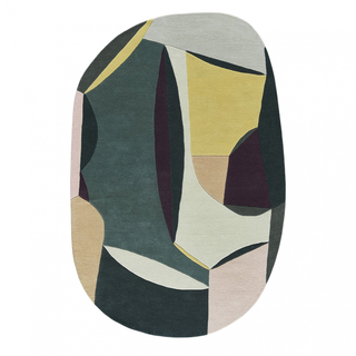 Современный ковер с абстрактным рисунком в приглушённых тонах зелёного. Нестандартная овальная форма и многослойная композиция напоминают фрагменты природных ландшафтов или кубистические формы. Мягкие переходы цвета создают ощущение глубины и движения. Такой ковер станет элегантным акцентом в интерьере, добавляя пространству художественность и спокойную утончённость.