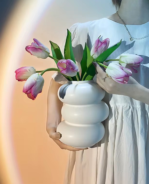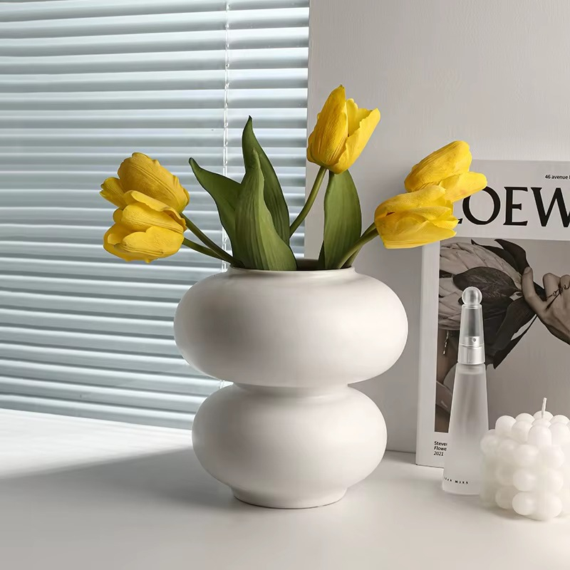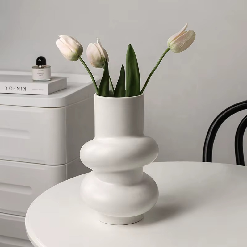 Керамические вазы с плавными объемными формами объединяют современный дизайн и мягкую скульптурность. Их матовая поверхность и сбалансированные пропорции создают ощущение спокойствия и гармонии. Эти вазы идеально подойдут для минималистичных пространств, где важен тактильный комфорт и чистота линий.