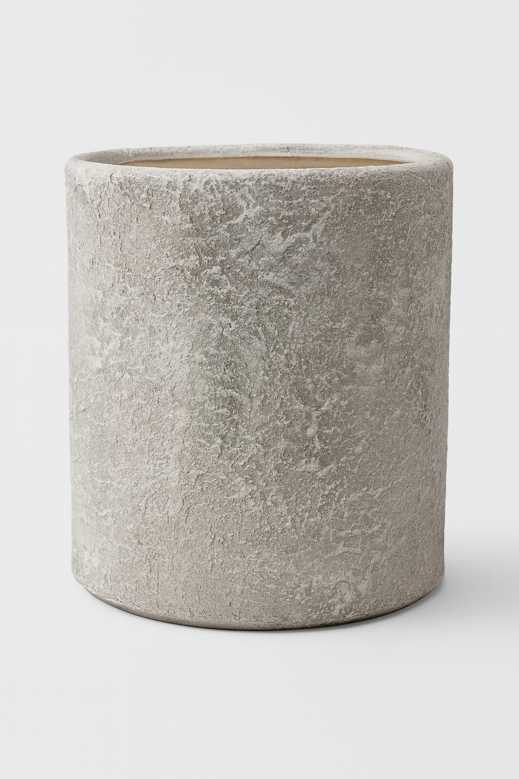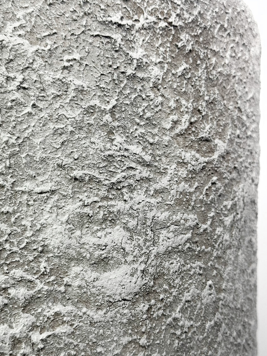 Лаконичный цилиндрический силуэт сочетается с живой, слегка шероховатой поверхностью, напоминающей натуральный камень или текстильную текстуру. Тёплый светло-бежевый оттенок создаёт ощущение уюта и спокойствия, наполняя пространство мягкой природной эстетикой.
