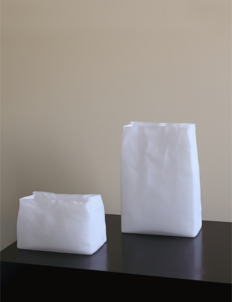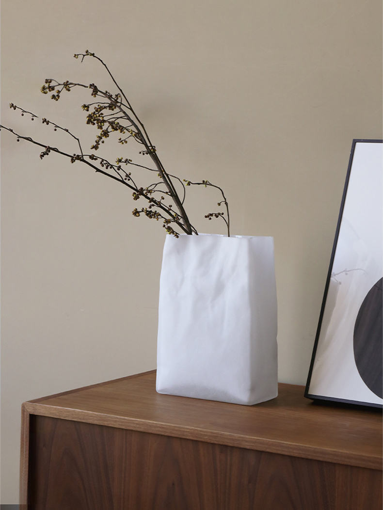 Минималистичная ваза, имитирующая смятую бумагу, сочетает в себе лёгкость формы и утончённую игру фактур. Матовая поверхность и мягкие линии создают ощущение спонтанности, словно предмет родился из импровизации художника. Она станет стильным акцентом в интерьере, где ценят эстетику простоты и ироничный дизайн.