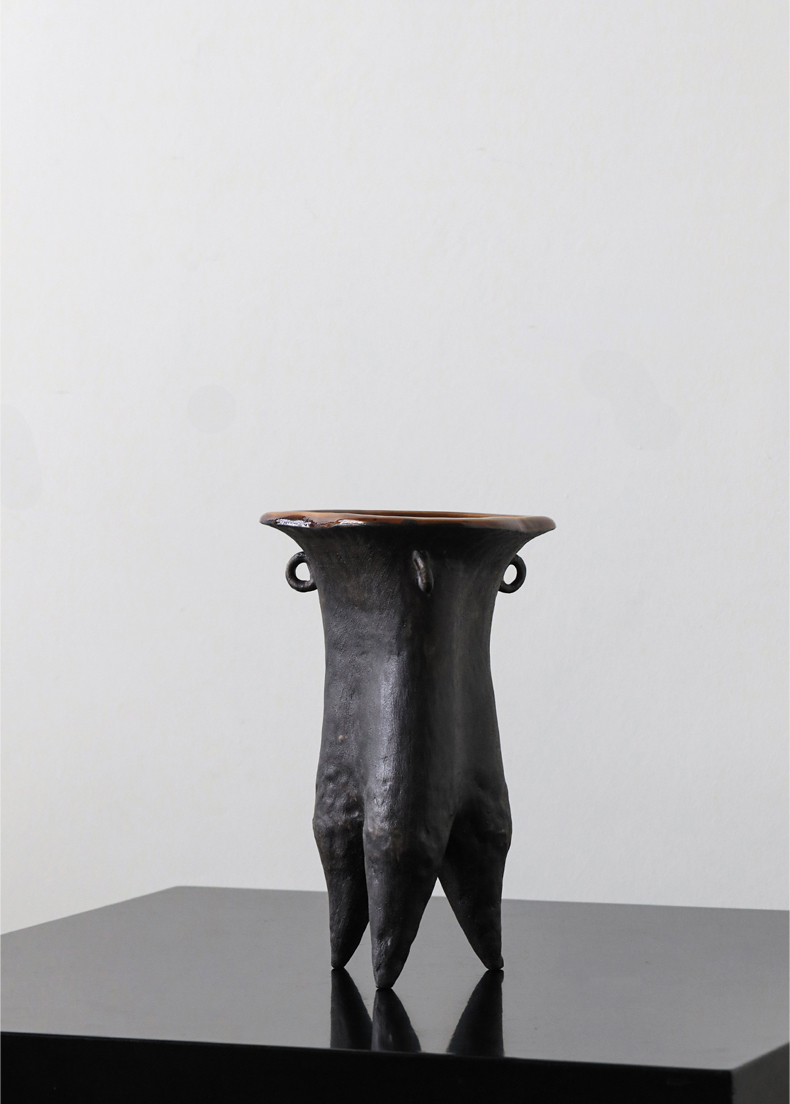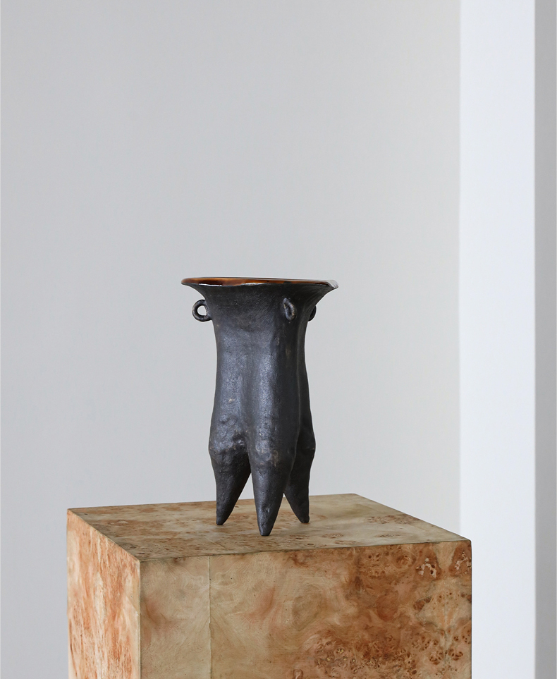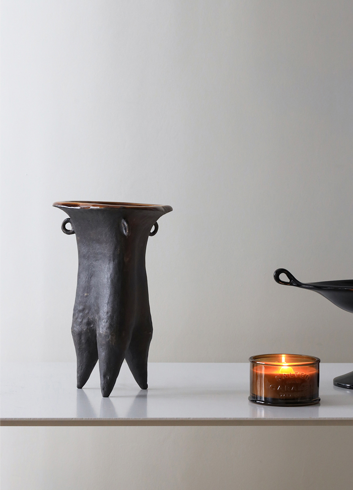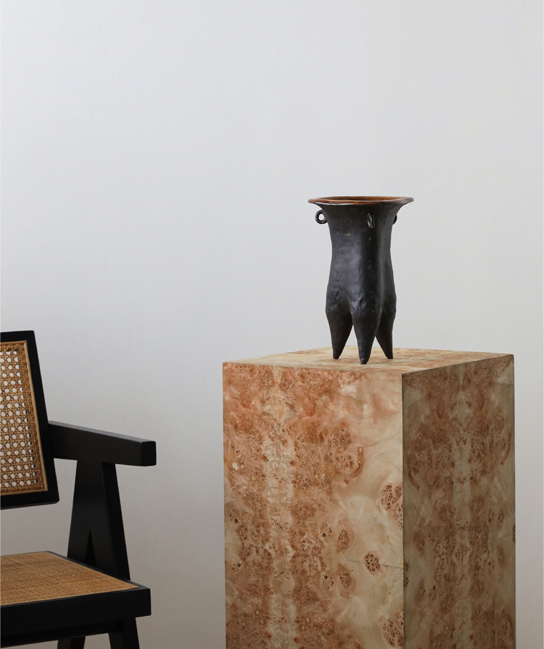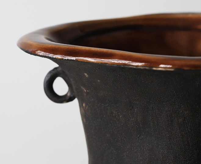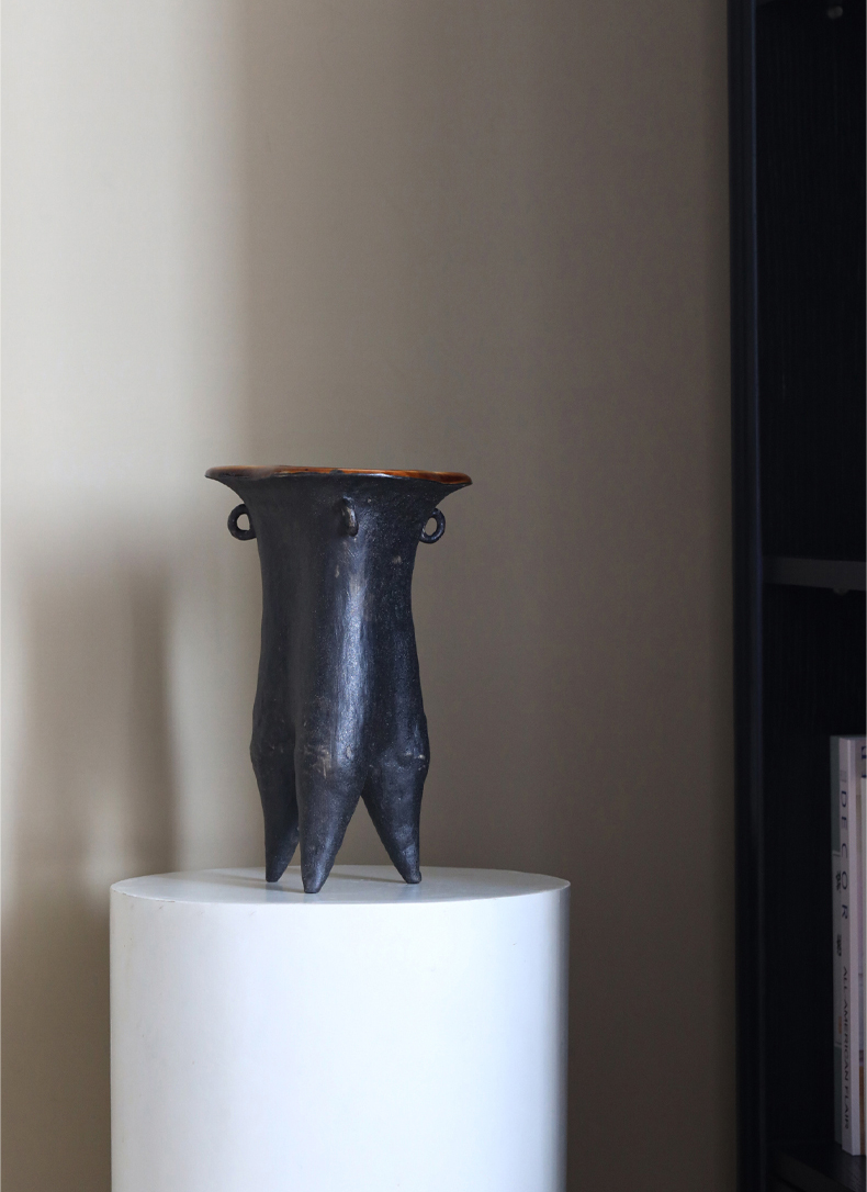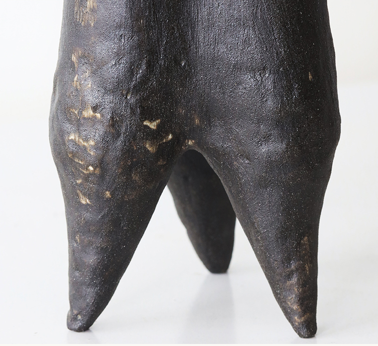 Ваза ручной работы с характерной скульптурной формой напоминает древний артефакт и придаёт интерьеру утончённый, музейный шарм. Матовая чёрная поверхность с неровной фактурой подчёркивает естественную эстетику материала. Идеальна для тех, кто ценит выразительные формы и предметы с историей.