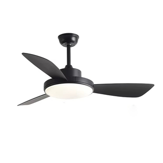 Потолочный вентилятор с LED-светильником и аэродинамичными лопастями Современный потолочный вентилятор с тремя изящно изогнутыми лопастями обеспечивает мощный, но тихий поток воздуха, идеально подходящий для жилых и коммерческих интерьеров. Встроенный LED-светильник даёт мягкое и равномерное освещение, а удобное управление (пульт ДУ или настенный переключатель — зависит от комплектации) делает использование максимально комфортным.
