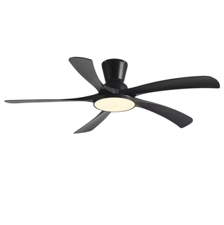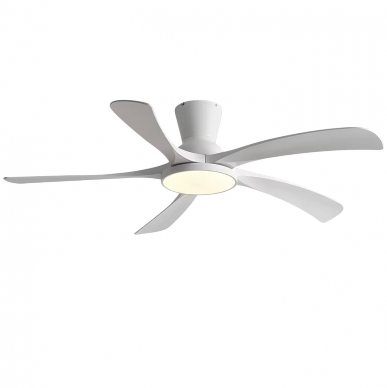 Эффектный потолочный вентилятор с пятьью изогнутыми лопастями обеспечивает мощный, но плавный поток воздуха благодаря продуманной аэродинамике. Встроенный LED-светильник создаёт мягкое, равномерное освещение, делая модель полноценной заменой потолочному светильнику. Доступны варианты управления: пульт ДУ или настенный выключатель.