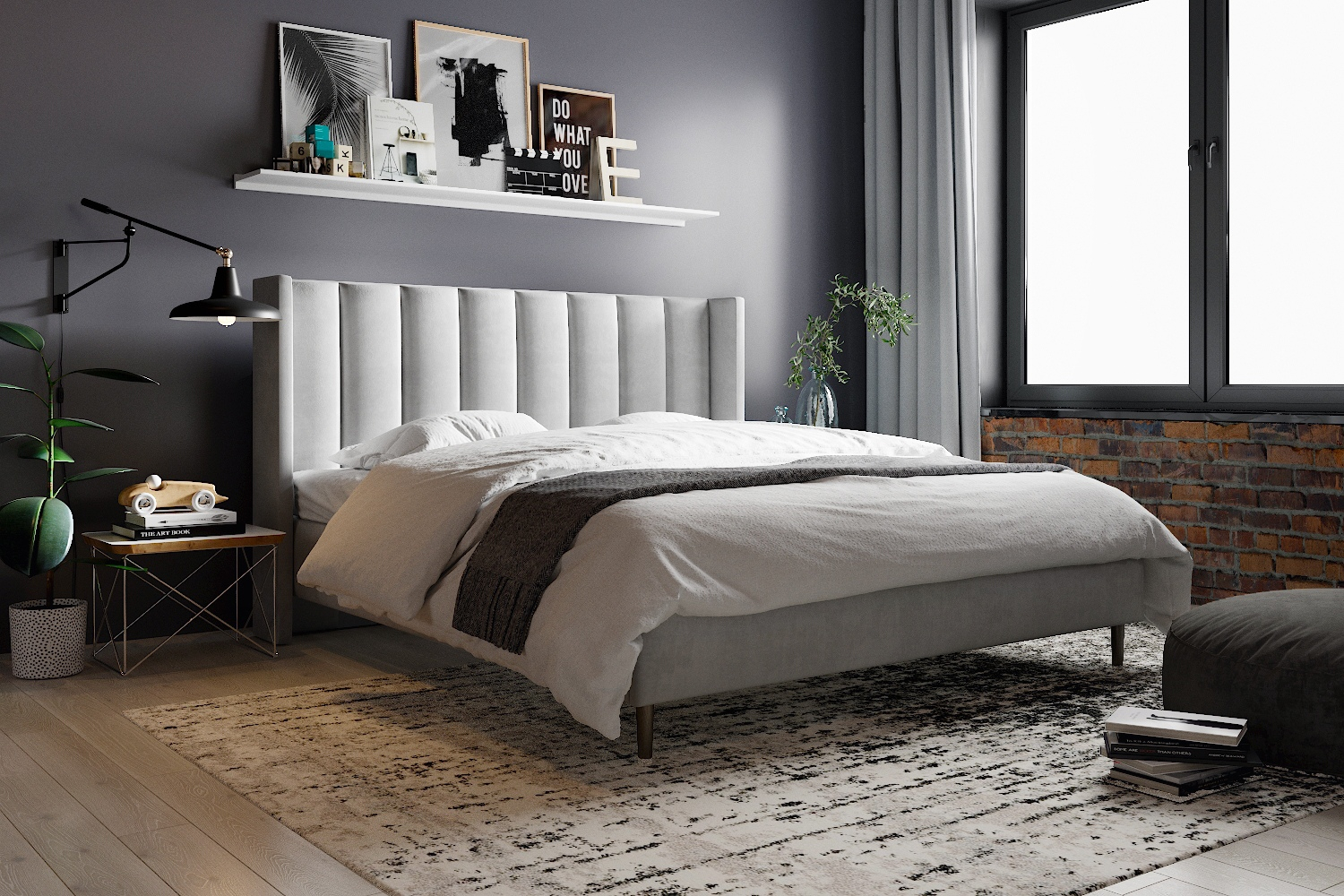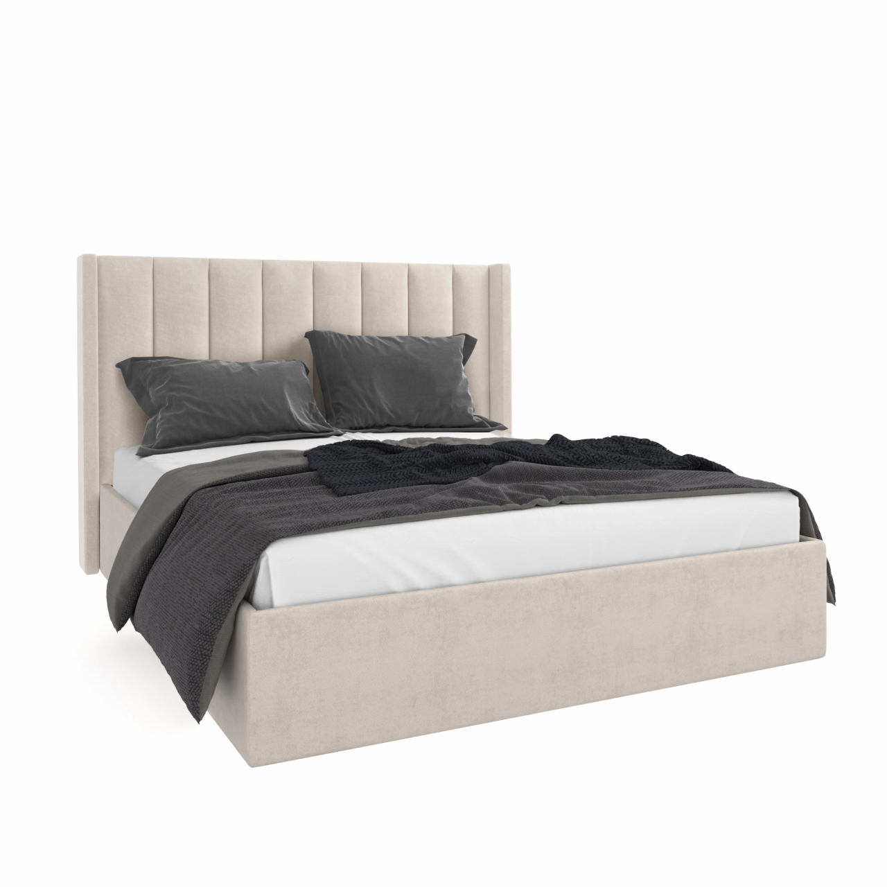 Элегантная кровать с выразительным геометрическим изголовьем станет акцентом спальни и добавит интерьеру индивидуальности. Мягкое основание и тщательно проработанные пропорции создают ощущение комфорта и визуальной лёгкости, а лаконичный дизайн легко сочетается как с минимализмом, так и с современным классическим стилем.