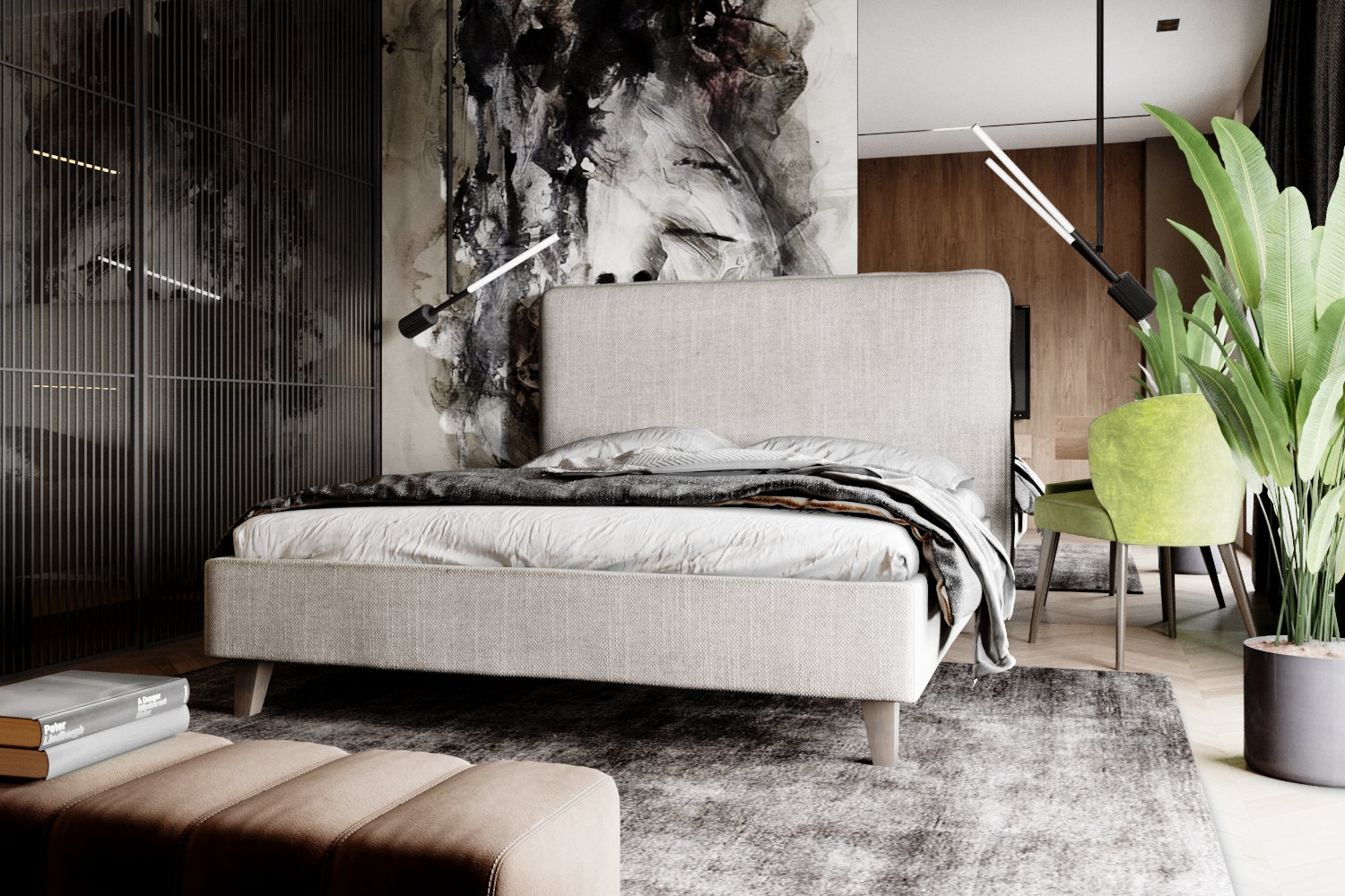 Элегантная кровать с выразительным геометрическим изголовьем станет акцентом спальни и добавит интерьеру индивидуальности. Мягкое основание и тщательно проработанные пропорции создают ощущение комфорта и визуальной лёгкости, а лаконичный дизайн легко сочетается как с минимализмом, так и с современным классическим стилем.