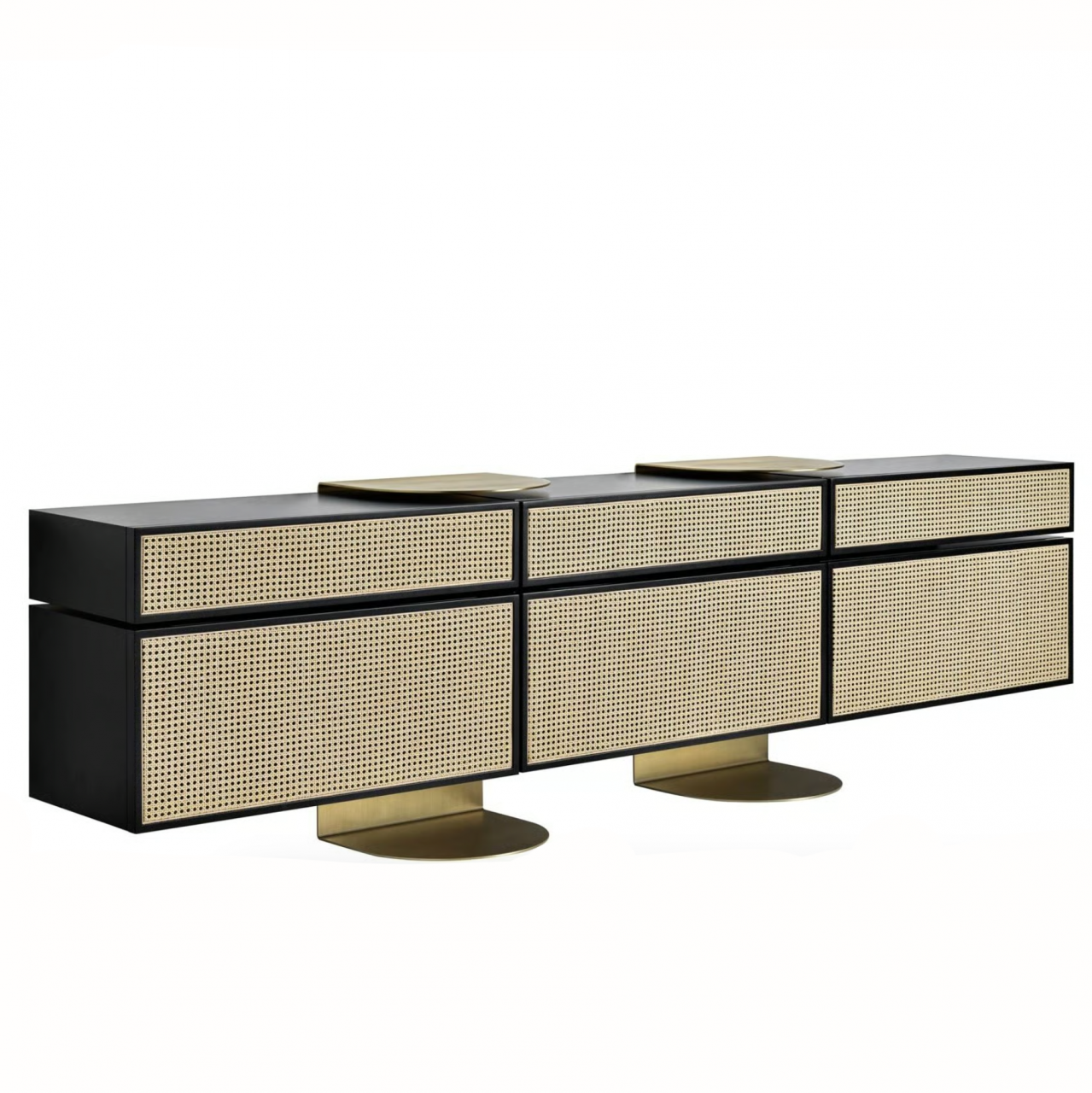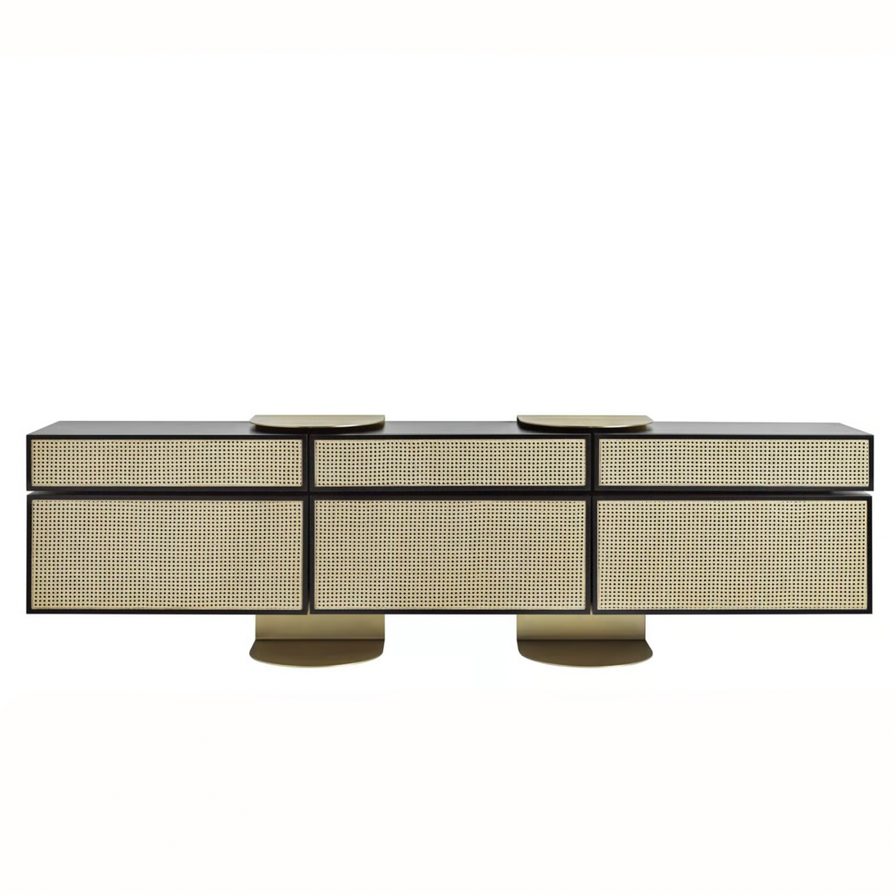 Стильный комод из дерева с фасадами из натурального ротанга — идеальное сочетание природной эстетики и современного дизайна. Лёгкая плетёная текстура добавляет интерьеру уюта и воздуха, а чёткая геометрия корпуса делает модель актуальной для современных пространств. Вместительные ящики обеспечивают удобное хранение, а благородные материалы подчёркивают статус и вкус. Комод станет эффектным акцентом в гостиной, спальне или столовой.