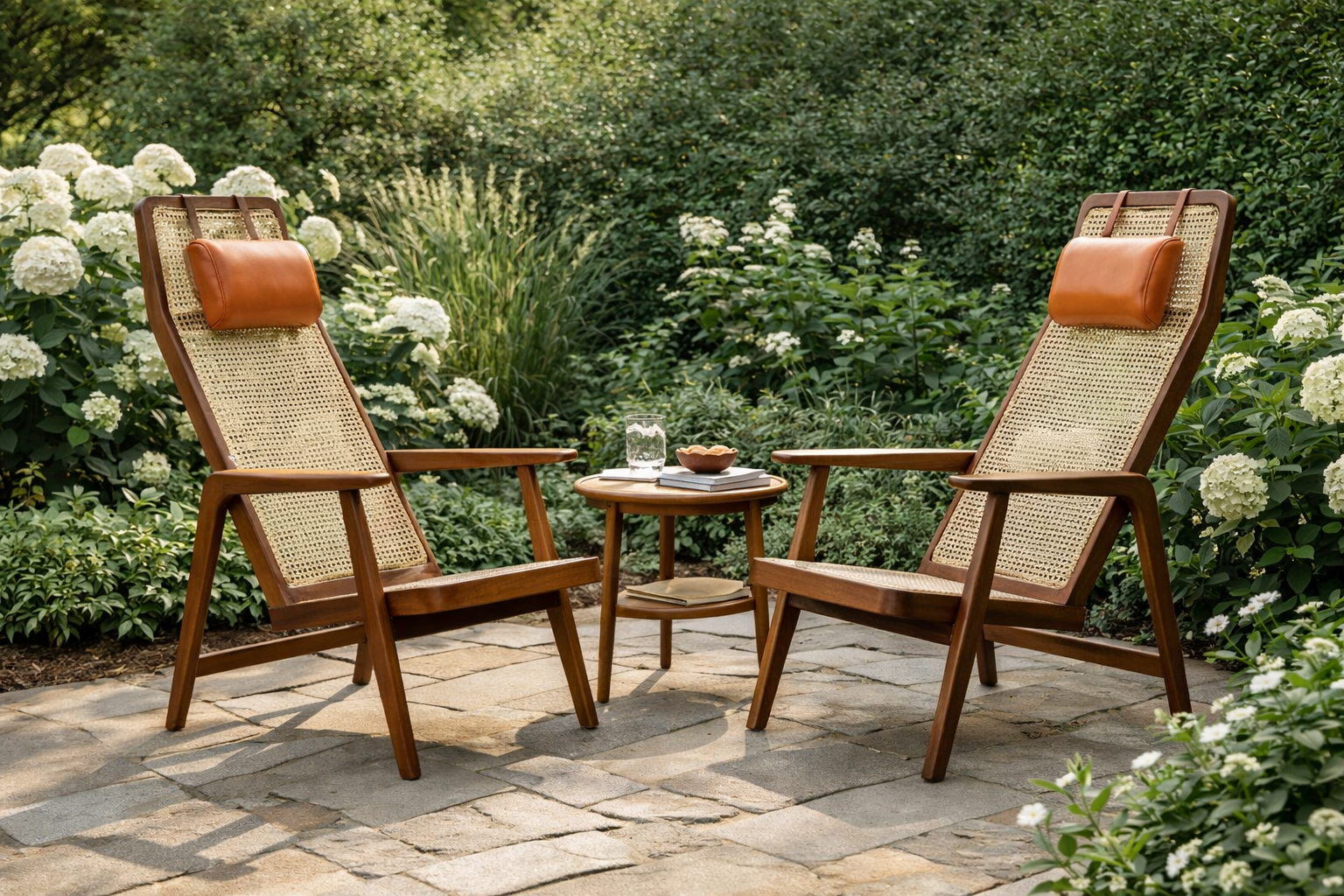 Кресло с выразительным дизайном, сочетающим натуральные материалы и лёгкую графичную конструкцию. Каркас выполнен из массива дерева, а спинка и сиденье дополнены плетёной вставкой, создающей ощущение лёгкости и естественной текстуры.