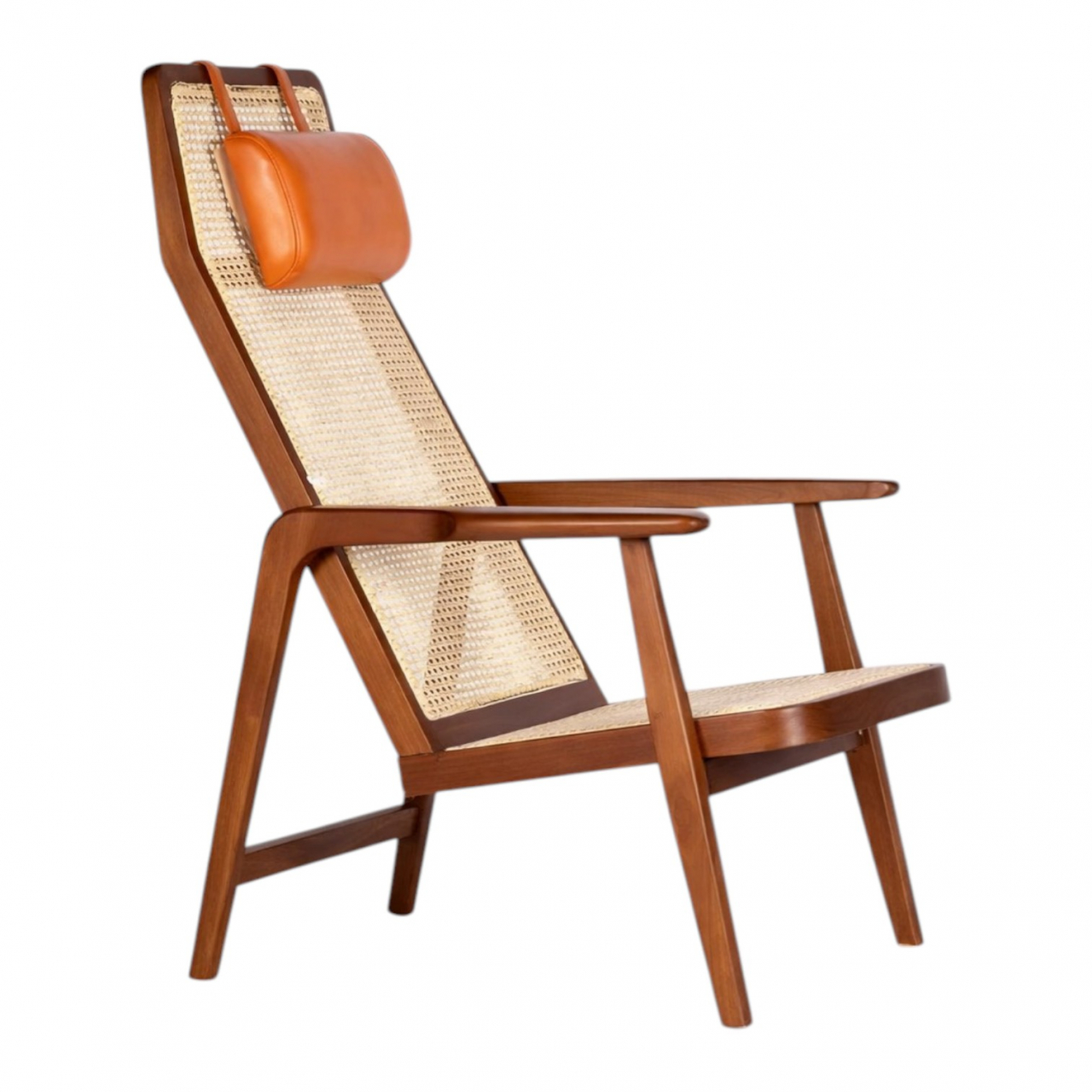 Мягкий кожаный подголовник обеспечивает дополнительный комфорт и служит стильным акцентом, подчёркивая характер модели. Наклонная спинка и широкие подлокотники создают удобную посадку для отдыха.