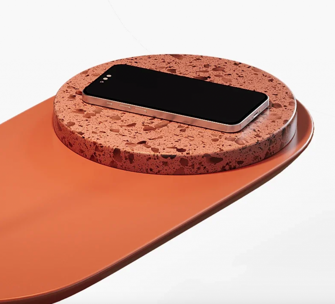 Стильный многофункциональный столик объединяет в себе изысканный дизайн, беспроводную зарядку и удобную лампу. Его современная форма и минималистичные линии делают его не только практичным, но и декоративным элементом интерьера. Подставка с беспроводной зарядкой выполнена из камня.