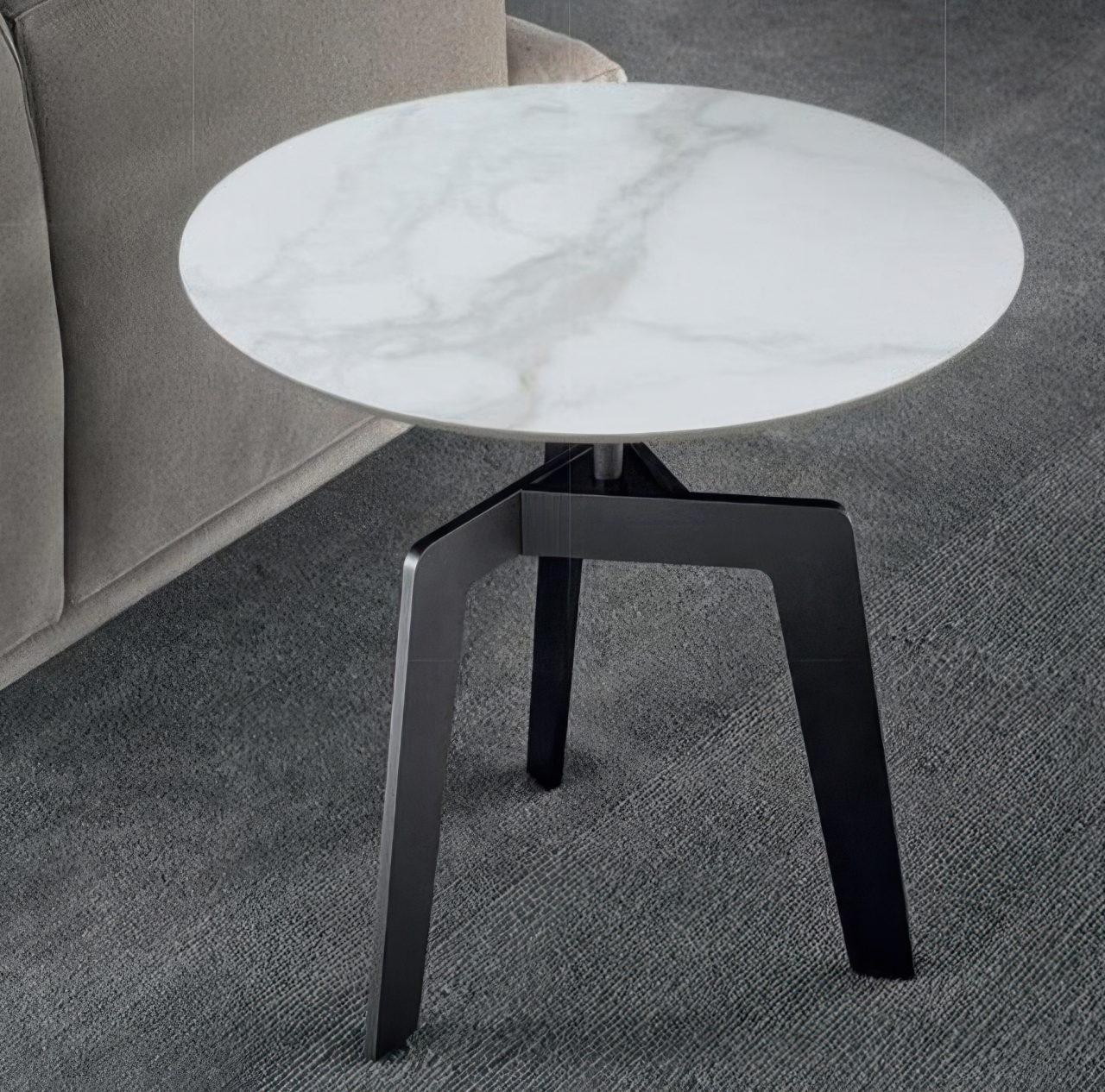 Журнальный столик Ujuti – это элегантный синтез природной красоты и современного дизайна, где каждая деталь продумана до мелочей. Круглая столешница из камня, придает интерьеру ноту сдержанной роскоши. Четыре тонкие металлические ножки, расставленные под точным углом, создают эффект парящей над полом поверхности, добавляя композиции легкости и воздушности.