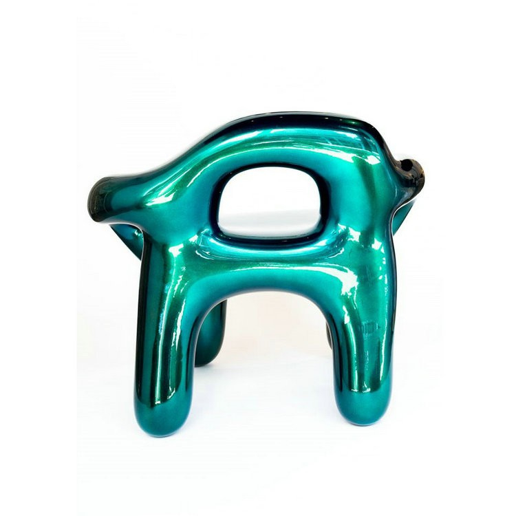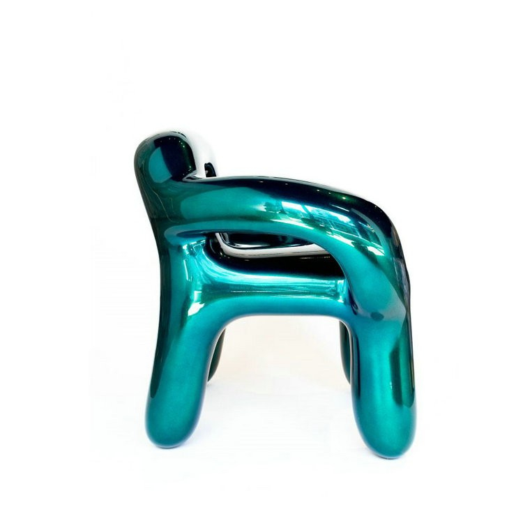 Изготовлен из стеклопластика, что обеспечивает прочность конструкции и лёгкость формы. Насыщенный металлический оттенок усиливает визуальную глубину и делает стул ярким дизайнерским акцентом.