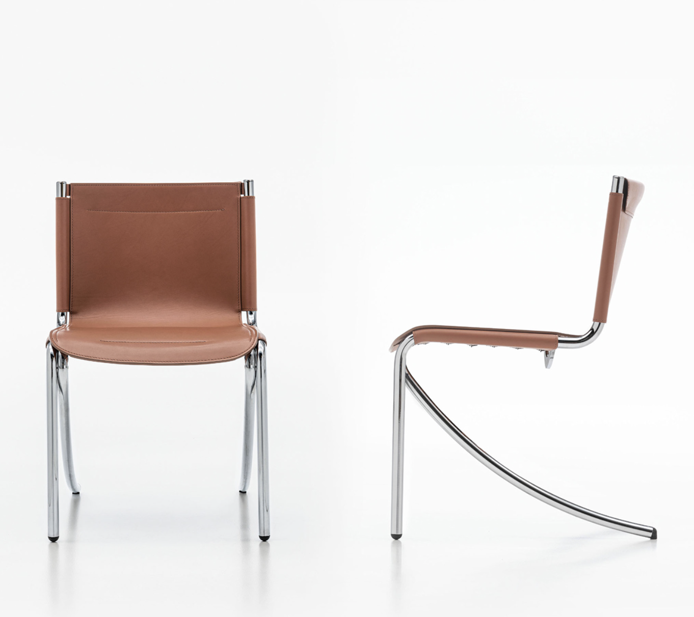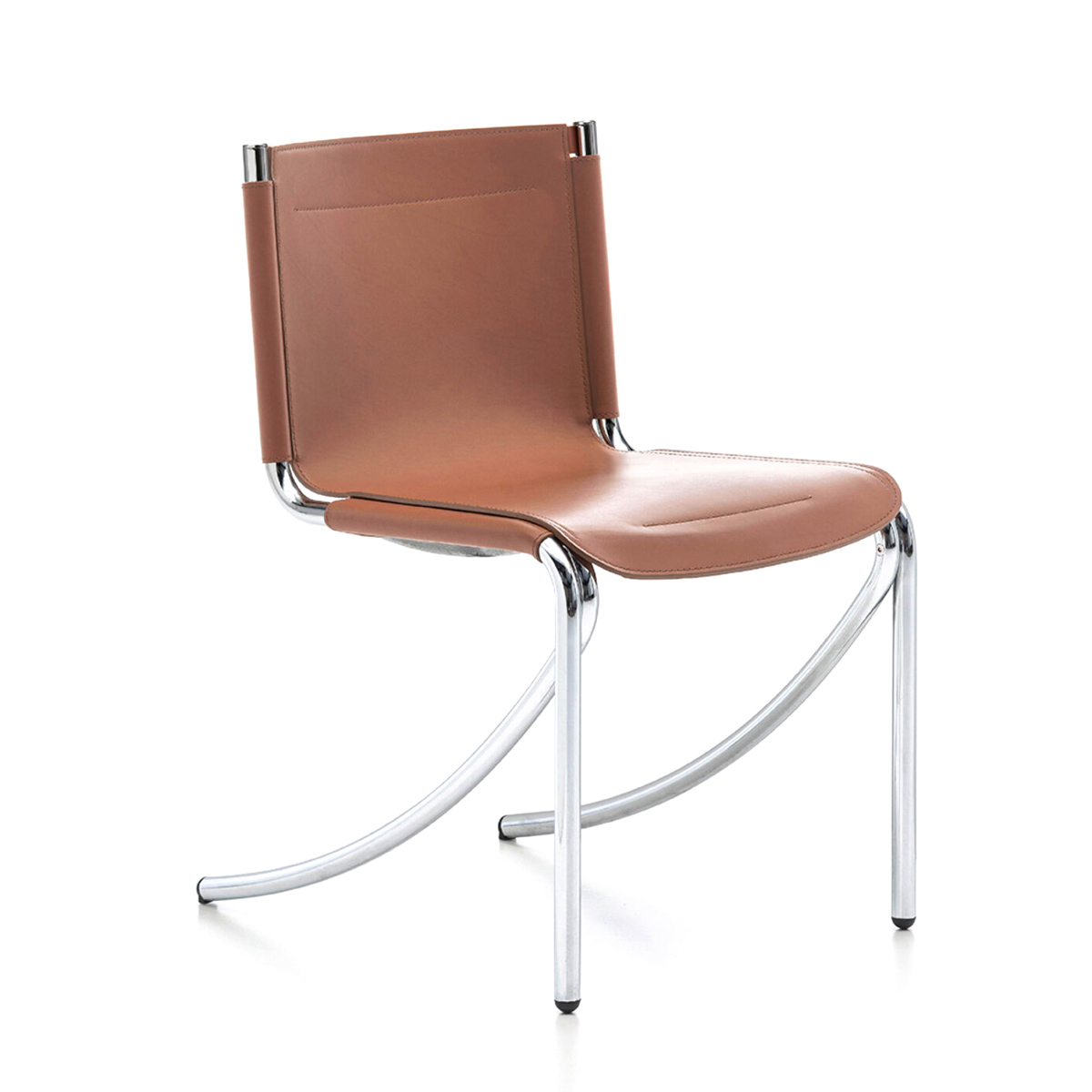 Элегантный стул, в котором минимализм встречается с комфортом. Мягкое сиденье и спинка выполнены из качественной плотной кожи тёплого карамельного оттенка — материал приятен на ощупь, устойчив к износу и легко очищается. Эргономичная форма повторяет контуры тела, обеспечивая удобную посадку даже при длительном использовании.Изящный хромированный каркас с плавными линиями придаёт стулу визуальную лёгкость и современный характер. Конструкция устойчива и прочна, а оригинальная форма ножек делает модель стильным акцентом интерьера.