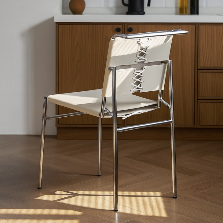 Современный стул в чистой архитектурной эстетике. Минималистичный дизайн, прямые линии и визуальная лёгкость делают эту модель идеальным выбором для актуальных интерьеров.