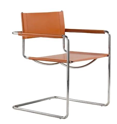 Лаконичный и выразительный стул с консольным основанием из полированной стали — икона современного дизайна. Сиденье и спинка выполнены из прочной кожаной стяжки, которая со временем становится только мягче и комфортнее. Благодаря гибкости консольной конструкции стул слегка пружинит, обеспечивая удобство посадки и стильный акцент в интерьере.