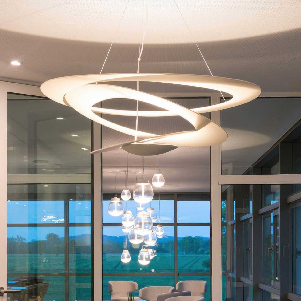 Подвесной светильник Pirce - это необычный скульптурный световой объект. Состоит из филигранного диска, превращающегося, как легкий водопад, в спираль, создавая оригинальный источник света и создавая роскошные световые эффекты в вашем жилом пространстве. Источник света, расположенный на нижней спирали, отражает свет на верхние завитки, рассеивая, таким образом, игру теней и света. Этот светильник подходит как для частных помещений, над обеденным столом, так и для общественных мест, таких как залы ресторанов, вестибюли отелей или даже большие приемные.