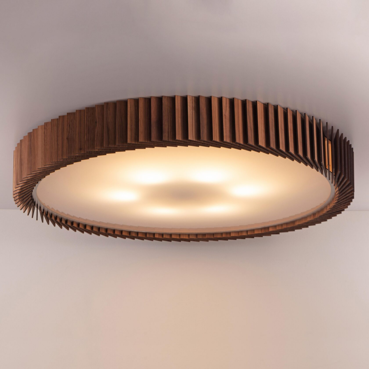 Большой Rotor диаметром 1 метр подходит для больших помещений, баров, ресторанов и просторных гостиных загородных домов. В люстру встроено 6 поворотных патронов в хромированном корпусе Е27.Натуральный шпон дерева никогда не выйдет из моды, и сочетается с массой других отделочных материалов в интерьере. Rotor может быть на струнном подвесе или крепиться в плотную к потолку. Тип крепежа в том или ином варианте имеет отличия, учитывайте это при оформлении заказа.