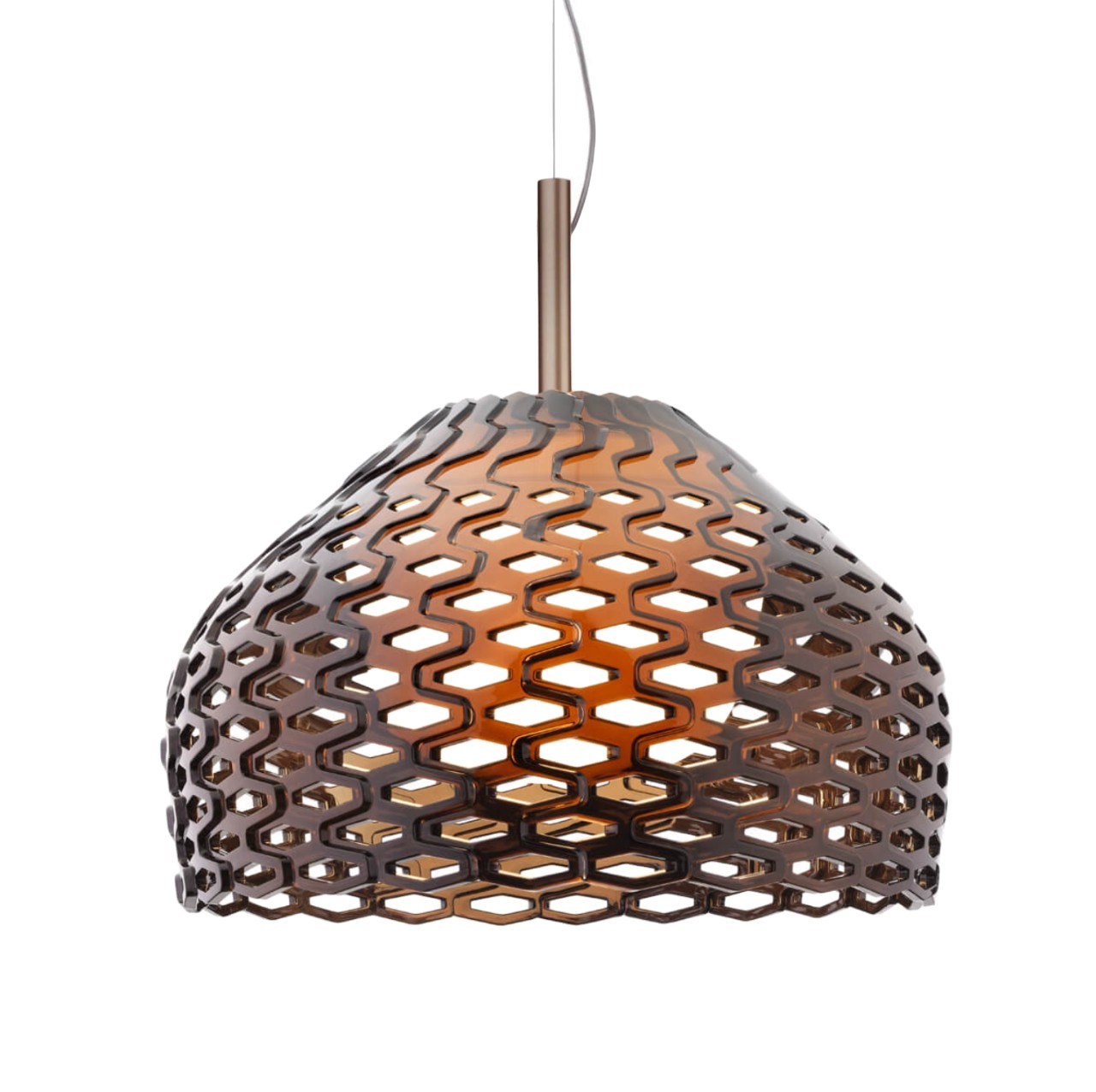 Подвесной светильник с ажурным металлическим плафоном — эффектный акцент для современного интерьера. Перфорированная структура с геометрическим рисунком создает выразительную игру света и тени, наполняя пространство теплым, атмосферным свечением.