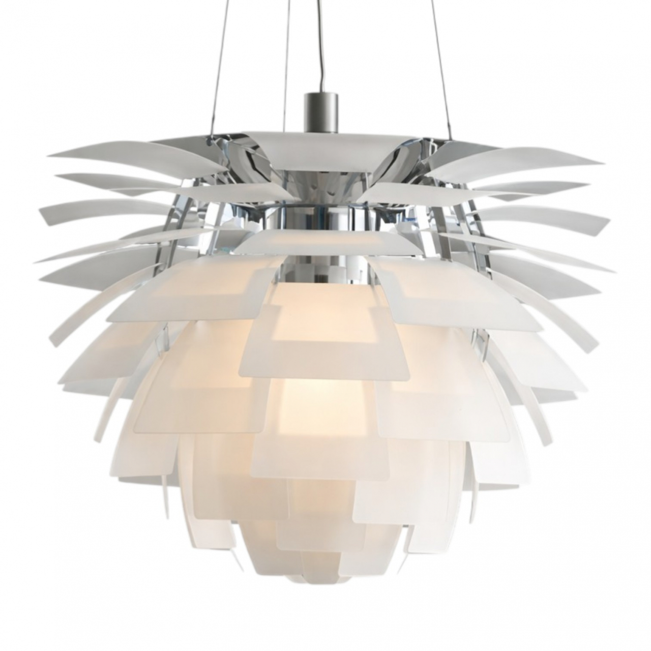 Подвесной светильник PH Artichoke с культовым многослойным дизайном, обеспечивающим мягкое и равномерное освещение без слепящего эффекта. Система перекрывающихся лепестков создаёт сложную игру света и теней, превращая светильник в выразительный арт-объект.