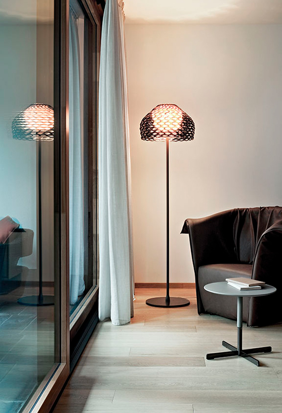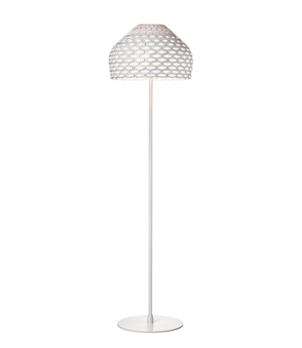 Торшер с ажурным металлическим плафоном — выразительное сочетание графичности и теплого света. Перфорированная структура с геометрическим рисунком создает эффектную игру света и тени, формируя уютную атмосферу в пространстве.