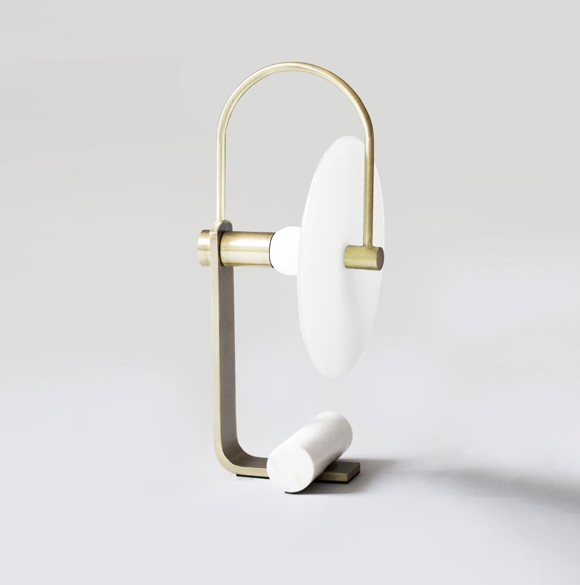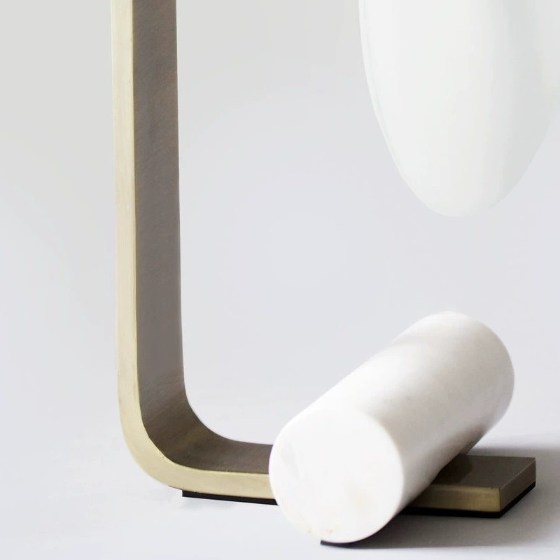 Контраст вертикальной и горизонтальной линий придаёт модели динамику, а устойчивое основание обеспечивает надёжность. Лампа выглядит как дизайнерский объект и органично вписывается в современные интерьеры.